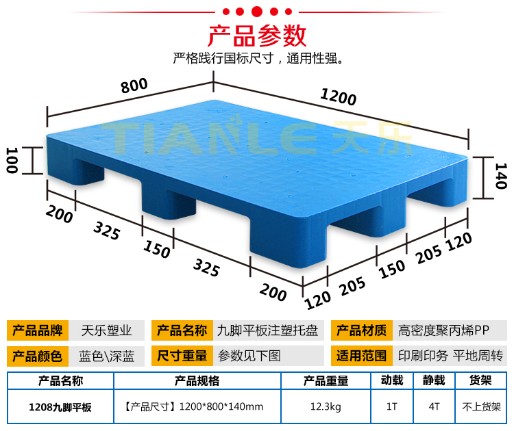 1208九腳平板塑料托盤