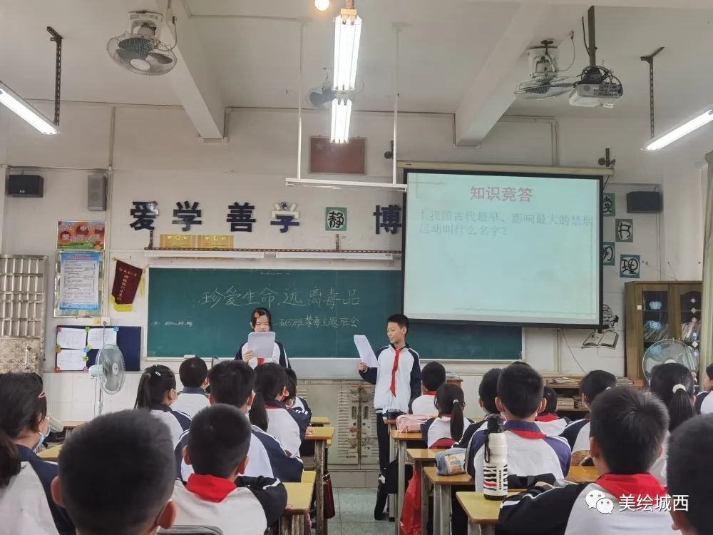 首先,班上的兩位小主持人請(qǐng)一位同學(xué)上來(lái)給其他同學(xué)們介紹了虎門銷煙,讓同學(xué)對(duì)毒品侵華的歷史有了更深刻的認(rèn)識(shí)。