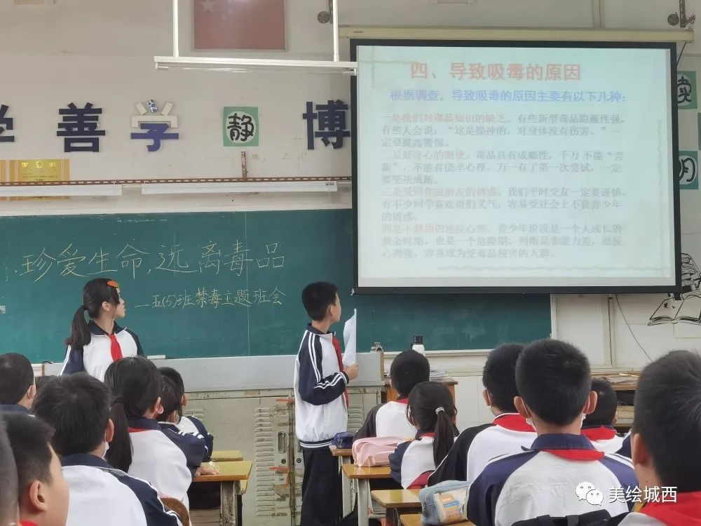 緊接著小主持人提出疑問(wèn),毒品的危害如此之大,為什么還會(huì)有青少年吸食毒品?帶著這個(gè)問(wèn)題,同學(xué)們積極舉手發(fā)言,踴躍表達(dá)出自己的想法,大致總結(jié)出了四個(gè)導(dǎo)致吸毒的主要原因,讓同學(xué)們不對(duì)毒品抱有好奇心和僥幸心理。