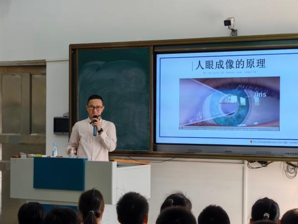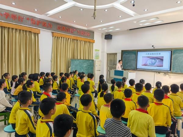 莫廣林醫(yī)生通過卡通圖片的PPT演示,結(jié)合實(shí)際情況,聲情并茂地講解了當(dāng)前青少年視力不良現(xiàn)狀、近視產(chǎn)生的原因、近視的危害和預(yù)防近視等知識(shí)。莫醫(yī)生通過與現(xiàn)場(chǎng)學(xué)生互動(dòng)的方式進(jìn)行溝通,深入淺出地闡述了眼睛的重要性。同時(shí)針對(duì)目前青少年兒童近視發(fā)病率較高的特點(diǎn),闡述了近視給學(xué)習(xí)、生活帶來的極大不便;詳細(xì)地講解了保護(hù)眼睛的基本常識(shí),從保持正確讀寫姿勢(shì)、養(yǎng)成良好的用眼衛(wèi)生習(xí)慣、保證睡眠、均衡營(yíng)養(yǎng)、藥物治療等幾個(gè)方面向?qū)W生介紹了如何保護(hù)眼睛預(yù)防近視。他特別強(qiáng)調(diào):要注意用眼衛(wèi)生,保證充足的睡眠時(shí)間;要堅(jiān)持認(rèn)真做好眼保健操;要不偏食挑食;不長(zhǎng)時(shí)間玩電腦手機(jī)、不看電視;積極參加體育鍛煉;看書寫字姿勢(shì)正確等,才能保護(hù)好視力。學(xué)生對(duì)“眼睛”有了全新的認(rèn)識(shí),現(xiàn)場(chǎng)氣氛熱烈,在座的同學(xué)們受益匪淺。