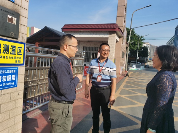在校門口,胡小明督學(xué)自覺接受了體溫檢測并做好入校登記。首先,安樂小學(xué)吳秀容校長詳細匯報了開學(xué)以來安樂小學(xué)各項工作的開展情況。接著,在吳秀容校長的陪同下,胡小明督學(xué)查看了校門口家長接送緩沖區(qū)、臨時健康觀察區(qū)、校醫(yī)室、留觀室、教室、食堂等場所,詳細了解了校園環(huán)境衛(wèi)生、教育教學(xué)、用餐管理、防疫物資儲備等情況,并對校園消防安全隱患作了深入排查。胡督學(xué)還細致了解了安樂小學(xué)疫情防控知識培訓(xùn)、應(yīng)急演練和校園封閉管理等學(xué)校疫情防控相關(guān)情況。胡小明督學(xué)對安樂小學(xué)各項工作給予了充分肯定,同時提出了一些中肯有效的改進建議,為學(xué)校下一步工作明晰了思路。