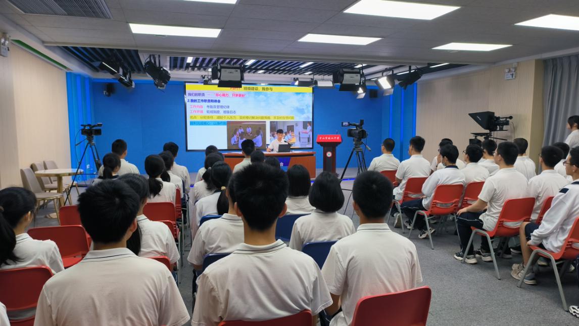 高二(6)班班委代表陳俊皓、杜佳佳、鄭洺東和廖必翔四位學(xué)長圍繞班級建設(shè)、班級凝聚力形成、班級特色文化創(chuàng)建和特色主題班會實踐活動等四個主題,分享自己平時如何協(xié)助班主任調(diào)動起每一位學(xué)生的自主能動性的感受與想法,認(rèn)為營造積極向上的班級氛圍是作為班級一份子、班級主要干部的重要職責(zé)所在。在主題演講中,四位同學(xué)毫不保留地向高一年級同學(xué)傳經(jīng)送寶,大到班級文化理念,小到班級的愛心舉動,無不彰顯了特色班級文化引領(lǐng)班級發(fā)展的重要性。