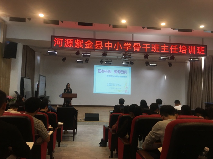 隨后,老師們移步到階梯室聆聽講座。首先,張洪娣校長圍繞學(xué)校的辦學(xué)規(guī)模與條件、辦學(xué)成果等幾個(gè)方面進(jìn)行介紹。然后,鎮(zhèn)名班主任工作室主持人陸冰老師從“班主任自己先要有幸福感”、“班主任在日常工作中要講究教育技巧”、“班級(jí)文化的內(nèi)涵及建設(shè)”幾個(gè)方面進(jìn)行交流,給大家分享了滿滿的干貨。接著,由學(xué)校心理健康工作室主持人廖慧潔老師介紹學(xué)校心理健康教育。