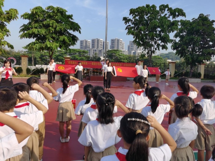 學(xué)校書記、少工委主任唐從彥校長在講話中提到,今天的中國比歷史上任何時期都更有信心和能力實現(xiàn)中華民族偉大復(fù)興的目標(biāo),少先隊員作為共產(chǎn)主義的接班人,將接過先輩手中的火炬,發(fā)揚革命前輩的優(yōu)良傳統(tǒng),努力拼搏,奮發(fā)圖強,從小樹立遠(yuǎn)大理想,愛黨、愛國、愛人民,從現(xiàn)在開始,從小事做起,好好鍛煉身體,努力學(xué)習(xí)知識,牢記黨對我們的希望和要求,一起學(xué)黨史、強信念、跟黨走,努力成長為能夠擔(dān)當(dāng)民族復(fù)興大任的時代新人!