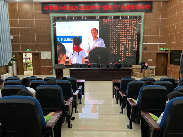 2022年6月6日是第27個(gè)全國(guó)“愛(ài)眼日”。當(dāng)天下午,香暉園小學(xué)報(bào)告廳座無(wú)虛席,三年級(jí)全體同學(xué)收看中山市教育和體育局組織的2022年全國(guó)“愛(ài)眼日”主題宣傳直播活動(dòng)。