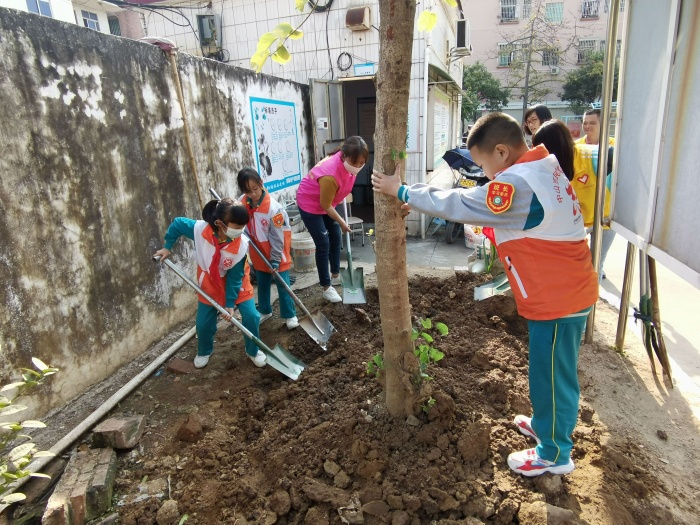 班會課上,各班主任圍繞愛樹、護(hù)樹,進(jìn)行樹類知識講座并在班內(nèi)進(jìn)行匯報交流,通過視頻了解植樹節(jié)的來歷及意義。學(xué)生分組共同創(chuàng)作愛樹護(hù)綠標(biāo)語,制作標(biāo)語牌,“我和小樹共成長”主題繪畫,組織同學(xué)們綠化教室等活動,使同學(xué)們在豐富多彩的活動中,感受大自然賜予我們的財富。最后,同學(xué)們走出教室,用自己的實際行動為校園增添一點綠,大家或者兩人合作,用心呵護(hù)每一顆樹木,本次實踐活動讓同學(xué)們親身感受著親近大自然的快樂,也培養(yǎng)了同學(xué)們關(guān)愛環(huán)境、愛護(hù)環(huán)境的意識;精心養(yǎng)護(hù)綠植,記錄生長過程,體驗勞動的快樂。