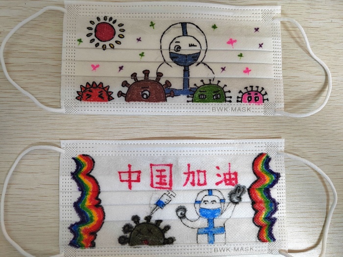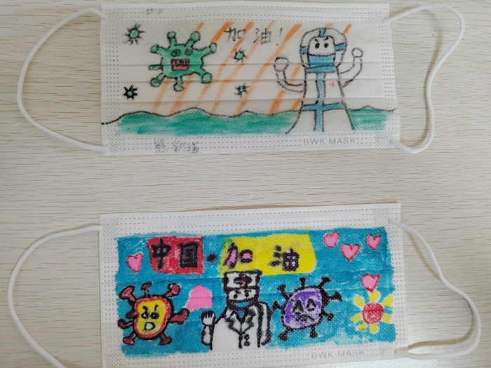 活動得到了同學(xué)們的積極響應(yīng),孩子們發(fā)揮自己的聰明才智,把愛心融入在創(chuàng)意口罩作品中,將自己的奇思妙想用畫筆繪制了系列口罩畫,在不影響口罩正常使用的前提下,對口罩進(jìn)行創(chuàng)意設(shè)計,用詼諧幽默等風(fēng)格表達(dá)如何在疫情期間做好個人防護(hù),時刻保持良好心態(tài),行動上疫情防護(hù)的口罩不能摘,思想上防范意識的“口罩”更不能摘。