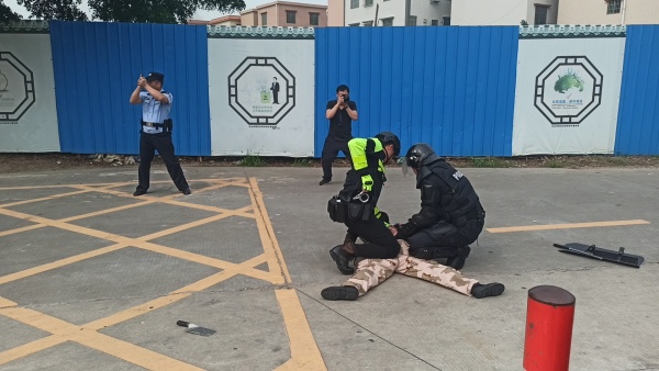 接到報(bào)警后,沖鋒隊(duì)、動(dòng)中備勤警力按照“1-3-5分鐘”快反處置要求,在規(guī)定時(shí)間內(nèi)到達(dá)現(xiàn)場(chǎng)進(jìn)行有效處置。巡警大隊(duì)沖鋒隊(duì)到達(dá)現(xiàn)場(chǎng)后,保安人員撤出,并作警戒。沖鋒隊(duì)與高危人員進(jìn)行對(duì)峙,與之周旋,等待支援。昌平派出所應(yīng)急處置小隊(duì)立即響應(yīng),并攜帶處突裝備和器材趕到現(xiàn)場(chǎng)。馬上配合沖鋒隊(duì)工作,防止高危人員逃跑。巡警大隊(duì)動(dòng)中備勤警力到達(dá)現(xiàn)場(chǎng)后,應(yīng)急處置小隊(duì)撤出,并作警戒、動(dòng)中備勤警力立即組成戰(zhàn)術(shù)陣型。聯(lián)合沖鋒隊(duì)對(duì)高危人員進(jìn)行圍捕,成功制服高危人員,押上車(chē)輛。