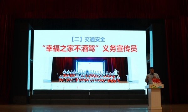 隨后,各個(gè)班級(jí)的代表上臺(tái)接受“幸福之家不酒駕”反酒駕義務(wù)宣傳員聘書,合影留念。