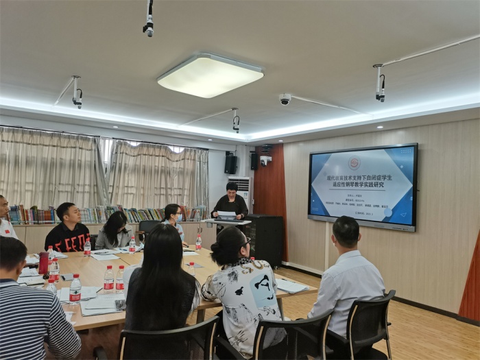 于姍永老師邏輯嚴(yán)謹(jǐn)?shù)貙?duì)盧超文校長(zhǎng)主持的市級(jí)立項(xiàng)的《現(xiàn)代教育技術(shù)支持下自閉癥學(xué)生適應(yīng)性鋼琴教學(xué)實(shí)踐研究》進(jìn)行開(kāi)題匯報(bào),此研究目的在于探索與實(shí)踐現(xiàn)代化教育技術(shù)支持下自閉癥學(xué)生的適應(yīng)性鋼琴教學(xué),從而建構(gòu)出現(xiàn)代教育技術(shù)支持體系以及自閉癥學(xué)生的適應(yīng)性鋼琴教學(xué)體系。專(zhuān)家組高度肯定了此課題研究的切入點(diǎn),認(rèn)為該研究具有重要的理論意義與實(shí)踐價(jià)值,研究設(shè)計(jì)規(guī)范、邏輯嚴(yán)密,研究方向明確,研究的具體實(shí)施過(guò)程清晰,具有很強(qiáng)的研究可行性。并進(jìn)一步建議梳理提煉現(xiàn)代化教育技術(shù)支持下自閉癥學(xué)生適應(yīng)性鋼琴實(shí)踐過(guò)程中個(gè)別化的具體研究目標(biāo),明確現(xiàn)代化教育技術(shù)支持內(nèi)容的具體選擇以及組合方式。