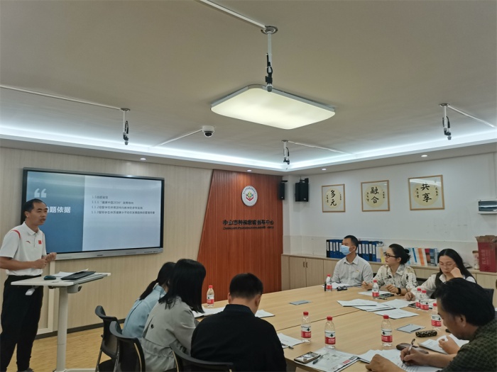 春風(fēng)送暖日,教研花正開(kāi)。3月23日上午,中山特校2022年度省市教育科研開(kāi)題活動(dòng)火熱開(kāi)展。本次活動(dòng)邀請(qǐng)到中山市教體局原教研室副主任、廣東省課程與教學(xué)專(zhuān)業(yè)委員會(huì)常務(wù)理事陳春艷,廣東省特級(jí)教師、全國(guó)優(yōu)秀教師、全國(guó)經(jīng)典誦讀百佳校長(zhǎng)陳麗,中山市教師發(fā)展中心高級(jí)講師、三名工程管理辦公室主任周立勝等三位評(píng)議專(zhuān)家,為特??蒲泄ぷ髦更c(diǎn)迷津、智慧引航。參與人員濟(jì)濟(jì)一堂,有:中山特校盧超文校長(zhǎng)、陳云華副校長(zhǎng)、李園林副校長(zhǎng)以及教研室、教務(wù)處、德育處相關(guān)行政;中山特校2022年度省市教育科研五個(gè)課題的主持人及其課題組成員;云浮市特殊教育學(xué)校、梅州市蕉嶺縣特殊教育學(xué)校、汕尾市城區(qū)特殊教育學(xué)校的跟崗交流教師,以及中山特校部分教師代表。