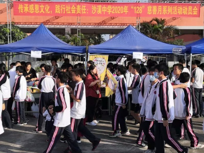為積極響應(yīng)沙溪鎮(zhèn)“12·8”慈善籌款活動的號召,弘揚樂善好施、崇文重教的傳統(tǒng)美德,11月27日下午,沙溪中學(xué)在學(xué)校操場舉行“傳承感恩文化,踐行社會責(zé)任”愛心義賣活動,沙溪中學(xué)全體師生和部分學(xué)生家長義工參與了本次活動。