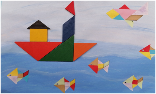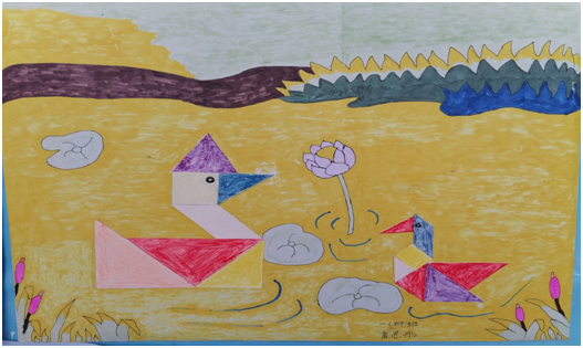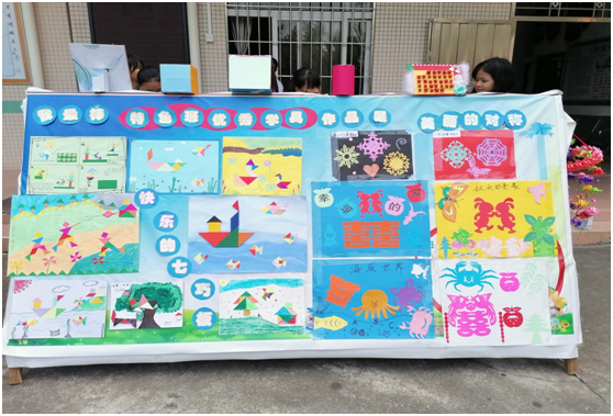 一年級(jí)孩子積極動(dòng)腦,充分發(fā)揮自己的想象力和創(chuàng)造力,用七巧板拼出各式各樣的圖案來。有的拼成了一只可愛的小貓,有的拼成了一艘遠(yuǎn)航的帆船,有的拼出了狐貍和烏鴉的故事,有的拼出了守株待兔的故事。簡(jiǎn)單的七巧板在孩子們手中拼出了豐富多樣的圖案。二年級(jí)孩子制作的是軸對(duì)稱圖形。孩子們充分發(fā)揮想象力,用不同顏色的卡紙巧妙搭配,剪一剪,拼一拼,涂一涂,一件件精美的作品就此產(chǎn)生。有豐收的秋天,有海底世界,有幸福的溫馨之家。三年級(jí)孩子制作的時(shí)鐘具有較高的欣賞和實(shí)用價(jià)值。時(shí)鐘造型獨(dú)特、千奇百怪,制作精美。你瞧——有的把鐘表設(shè)計(jì)成動(dòng)物的形狀,有的在時(shí)鐘上繪制各種精美圖案,真讓人贊嘆不已!