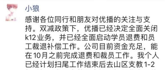 同時,新東方在線副總裁、東方優(yōu)播CEO朱宇也表示,個人計劃未來將去山區(qū)支教1-2年。