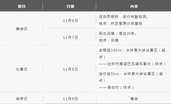 由西藏自治區(qū)體育局、林芝市人民政府主辦,廣東省體育局指導(dǎo)的第二屆南迦巴瓦山地馬拉松將于11月6日—8日在西藏林芝市舉辦。