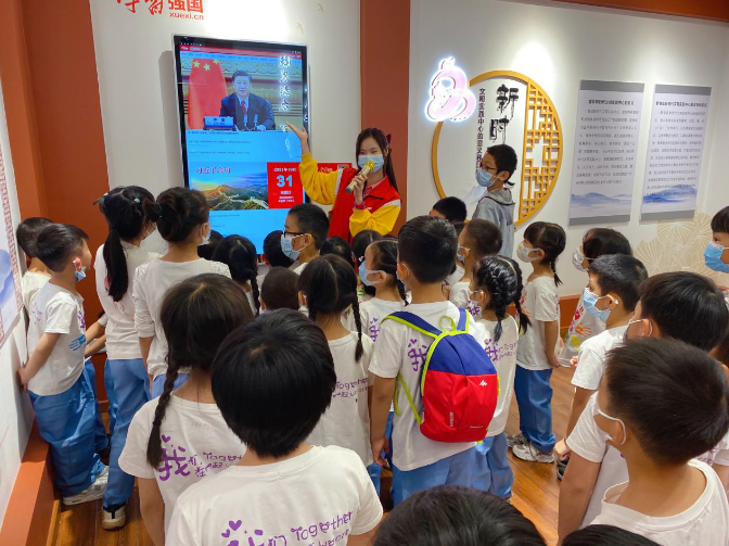 作為新會(huì)首批鄉(xiāng)村“復(fù)興少年宮”之一,新會(huì)區(qū)新時(shí)代文明實(shí)踐中心積極強(qiáng)化“造血”功能,于課余時(shí)間、節(jié)假日期間積極統(tǒng)籌、組織、打造“小紅星”宣講隊(duì)、“文明導(dǎo)賞員”志愿講解隊(duì)等未成年人志愿宣講隊(duì)伍。6位音樂黨課“小助教”——“文明導(dǎo)賞員”為這群萌娃開展紅色講解服務(wù),以《不忘來時(shí)路》影片播放、文明實(shí)踐圖片展示、新科技機(jī)器互動(dòng)等“情景式”學(xué)習(xí)教育方式,引導(dǎo)萌娃們傳承紅色基因。