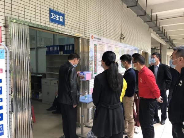 參觀人員一行最關(guān)心的是學(xué)校臨時(shí)觀察室的設(shè)立和應(yīng)急處置工作。據(jù)謝觀平主任介紹,東鳳中學(xué)設(shè)立了設(shè)施較為完備的臨時(shí)觀察室,學(xué)生一旦在校內(nèi)出現(xiàn)體溫異常情況,將馬上更換醫(yī)用外科口罩,由班主任或校醫(yī)帶到臨時(shí)觀察室,并由校醫(yī)詢問(wèn)該學(xué)生在14天內(nèi)有無(wú)疫情重點(diǎn)地區(qū)旅游史、途徑史,有無(wú)確診、疑似病例接觸史,并做好登記,逐級(jí)上報(bào),視情況進(jìn)行進(jìn)一步處理。