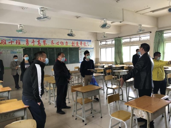 隨后,參觀人員一行隨同謝主任進(jìn)入教室參觀,查看了東鳳中學(xué)的教室桌椅布置和防疫物資準(zhǔn)備。東鳳中學(xué)對(duì)學(xué)生實(shí)行25人小班化教學(xué),學(xué)生桌椅間隔超過(guò)1米,相對(duì)固定了學(xué)生的活動(dòng)區(qū)域,達(dá)到了減少聚集的目的。