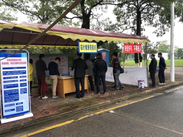 謝觀平主任首先介紹學(xué)校側(cè)門(mén)對(duì)學(xué)生進(jìn)入校門(mén)的體溫監(jiān)測(cè)安排。寬敞的大門(mén)中設(shè)置了四條學(xué)生測(cè)溫通道,兩條電子測(cè)溫通道,兩條人工測(cè)溫通道,學(xué)生間隔一米排隊(duì)測(cè)溫后有序地進(jìn)入校園。一旦發(fā)現(xiàn)體溫異常學(xué)生,將由校醫(yī)帶到測(cè)溫點(diǎn)旁的臨時(shí)觀察點(diǎn)并用水銀體溫計(jì)核實(shí)體溫,視情況進(jìn)一步按規(guī)定的流程處理。