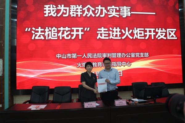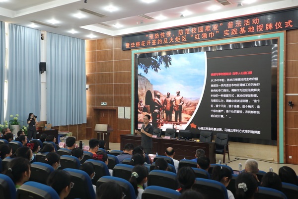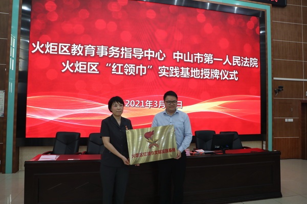 活動首先進行“法槌花開”簽約及火炬區(qū)“紅領巾”實踐基地授牌儀式,在全體與會人員的共同見證下,中山市第一法院審判管理辦公室負責人丁向娜與火炬開發(fā)區(qū)德育專干謝藝波上臺現(xiàn)場簽約,謝藝波代表火炬開發(fā)區(qū)教育事務指導中心向中山市第一人民法院授予“火炬區(qū)紅領巾文明實踐基地”牌匾。丁向娜表示,中山市第一人民法院開展“法槌花開”系列普法活動,旨在以法院現(xiàn)場研學、與法官面對面交流、法律知識問答、模擬法庭、法官體驗等豐富形式,達到以真實體驗潤物無聲的普法效果,歡迎各學校組織學生到法院開展相關活動,進一步提高學生法律和自我防范意識。
