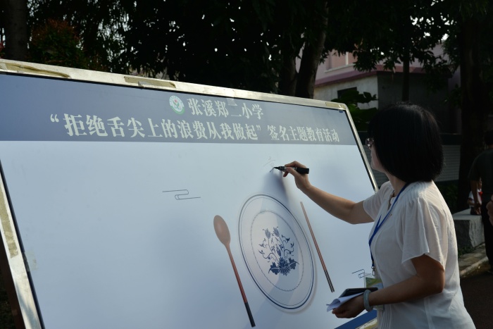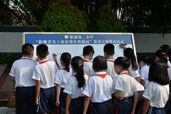 為積極響應(yīng)黨中央的號(hào)召,拒絕舌尖上的浪費(fèi),傳承舌尖上的美德,學(xué)校德育處王太能主任帶領(lǐng)全體學(xué)生宣誓,宣誓結(jié)束后,戴織校長帶領(lǐng)教師代表和學(xué)生代表在“拒絕舌尖上的浪費(fèi)從我做起”宣傳板上簽名,張溪學(xué)子爭(zhēng)做“光盤行動(dòng)”的踐行者,爭(zhēng)做節(jié)約糧食的倡導(dǎo)者、行動(dòng)者。