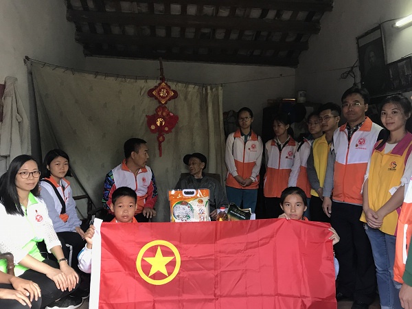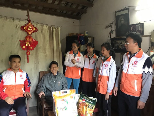 活動當(dāng)天,在五桂山辦事處團(tuán)工委書記陳惠宜、五桂山辦事處團(tuán)工委干事劉素貞、五桂山學(xué)校黨支部書記劉繼恭、五桂山學(xué)校中學(xué)部德育主任劉偉雄、五桂山學(xué)校團(tuán)委書記馮銳強(qiáng)、團(tuán)委委員鄧運(yùn)良以及五桂山城管工作人員等的帶領(lǐng)下,慰問組一行二十余人分別慰問了家住石鼓村的老人、困難學(xué)生家庭共三戶,給他們送去了油、米、奶粉、麥片等慰問品。志愿者們先是來到了一家彭姓老人的家里,給老人送上了慰問品后,志愿者們和老人聊起了家常,詢問老人的生活情況、身體狀況,了解老人的想法和需求,有些志愿者還給老人講解預(yù)防和處理突發(fā)事件的知識。大家有說有笑,特別是在學(xué)生志愿者的青春熱情的感染下,老人露出了喜悅的笑容。在征得老人同意的情況下,志愿者們分工合作,幫助老人掃地、拖地、擦窗、抹桌椅,大家團(tuán)結(jié)協(xié)作、發(fā)揚(yáng)不怕苦、不怕累、不怕臟的雷鋒精神,把老人家里家外打掃得干干凈凈、收拾整整齊齊。老人對志愿者們的辛勤付出表示感謝,并和志愿者們一起合照留念。之后,志愿者們走訪了兩家困難學(xué)生家庭,給他們送上了慰問品和關(guān)愛。