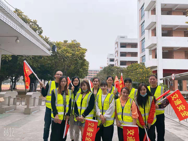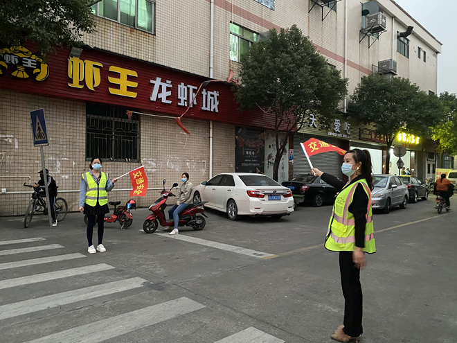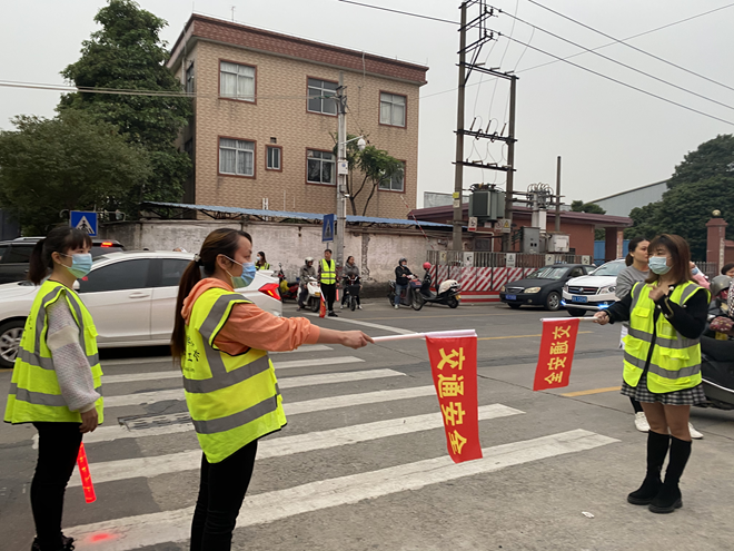 每逢周五,江義中學(xué)門口總有一群綠色的身影,在熙熙攘攘的人群中格外顯眼。這群綠衣天使就是我們江義中學(xué)可親可愛的義工家長們。為了更好地為孩子們的放學(xué)安全保駕護(hù)航,江義中學(xué)的學(xué)生家委會成員組織各班家長,志愿成立了江義中學(xué)護(hù)學(xué)崗志愿服務(wù)隊(duì),每一個周五下午放學(xué)時,他們堅(jiān)守在側(cè)門各個交叉路口,疏導(dǎo)交通,合理安排學(xué)生分批過馬路,確保每一位學(xué)生開開心心上學(xué)來,平平安安回家去。