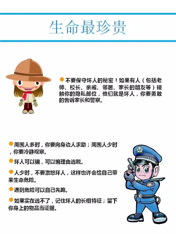 危險都是潛在的,預防是最有力的武器。所以一定要把功夫花在平時,為孩子布好全方位的安全防護網(wǎng),提高孩子的隱私意識、警惕性和自我防護能力。