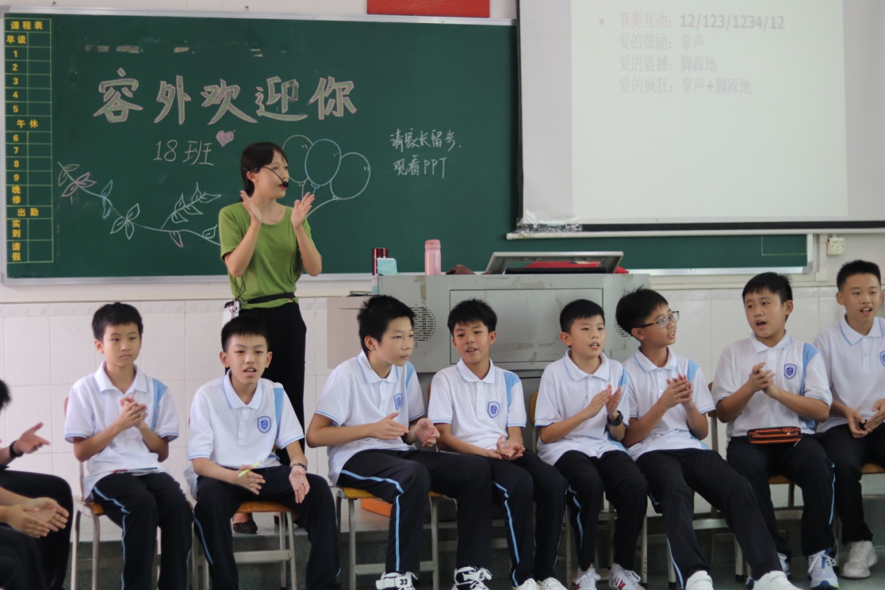 同學們學會了用整齊劃一的掌聲表達“愛的鼓勵”,與此同時,各班還制定了團體契約,為形成一個彼此接納、安全、關(guān)懷、支持、親切溫暖的大家庭而努力。